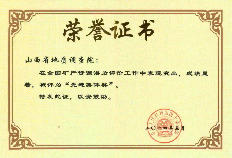 2013年成立以来,先后完成了《山西省重要矿产资源潜力评价成果报告》、《山西省重要矿种矿产预测成果报告》、《山西省重要矿种区域成矿规律研究成果报告》、《华北地块沉积-变质铁矿重要矿集区大型铁矿床资料汇编图册》的编制,完成了山西省河东煤田非常规能源选区研究、山西省煤层气勘探开发选区评价、山西省金刚石找矿选区评价、山西五台-恒山地区铁矿整装勘查区专项填图与技术应用示范等项。